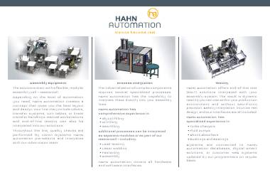 HAHN Automation is an internationally operating manufacturer of special machinery and develops innovative solutions for the automation of assembly and testing processes. Through many years of experience, innovative developments and high quality awareness, HAHN Automation has developed into one of the world's leading mechanical engineering companies with more than 25 years of experience.
